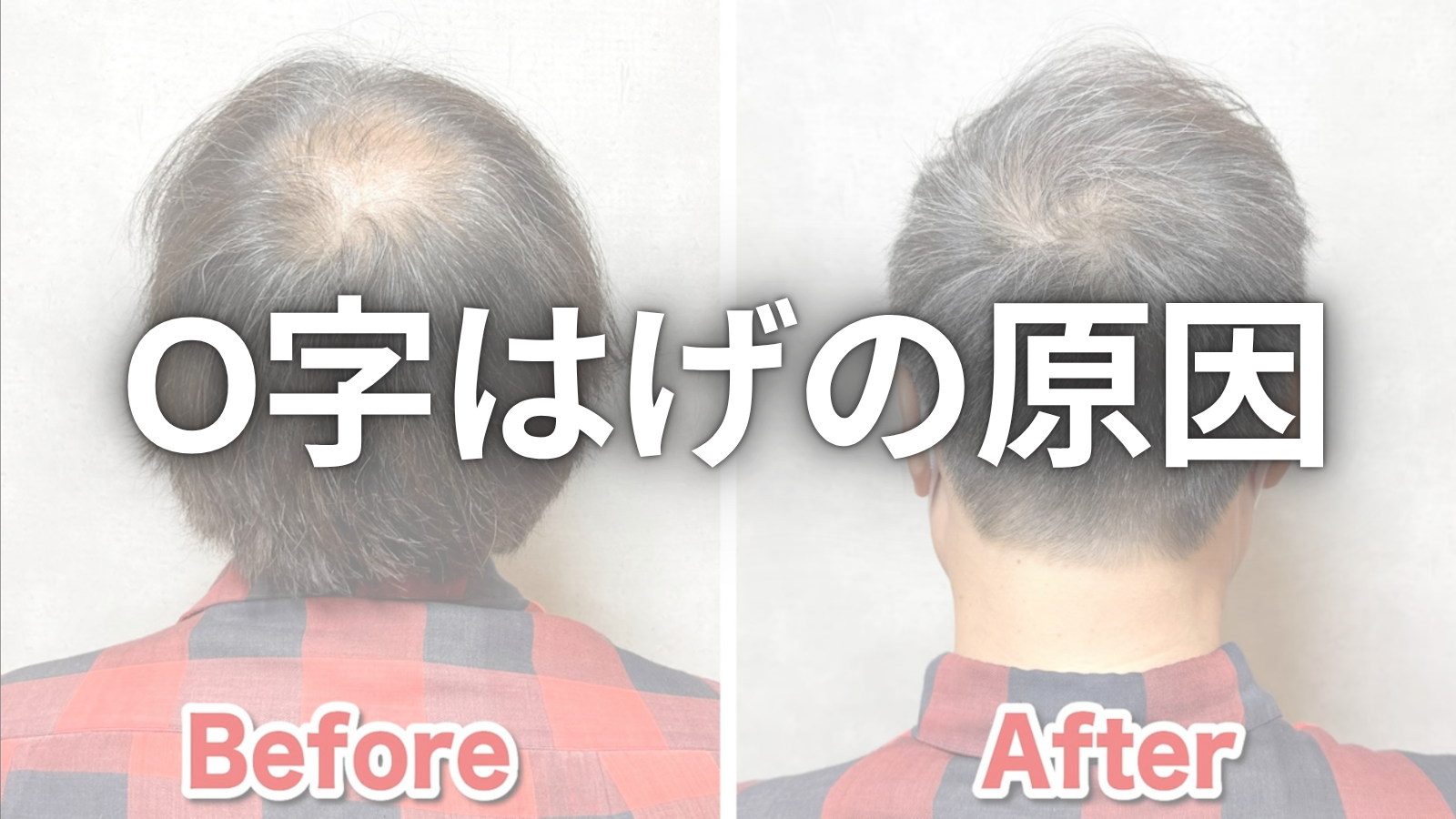 つむじハゲとも言われ、上から見たときにO字のような形に見えます。