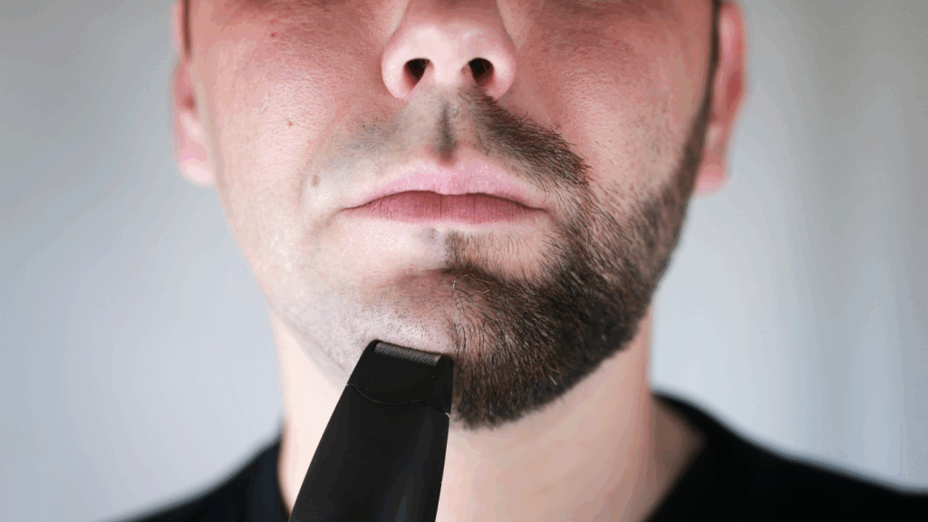 ここで髭を取り入れると、顔の下半分にポイントが加わり、全体のバランスが良くなります。