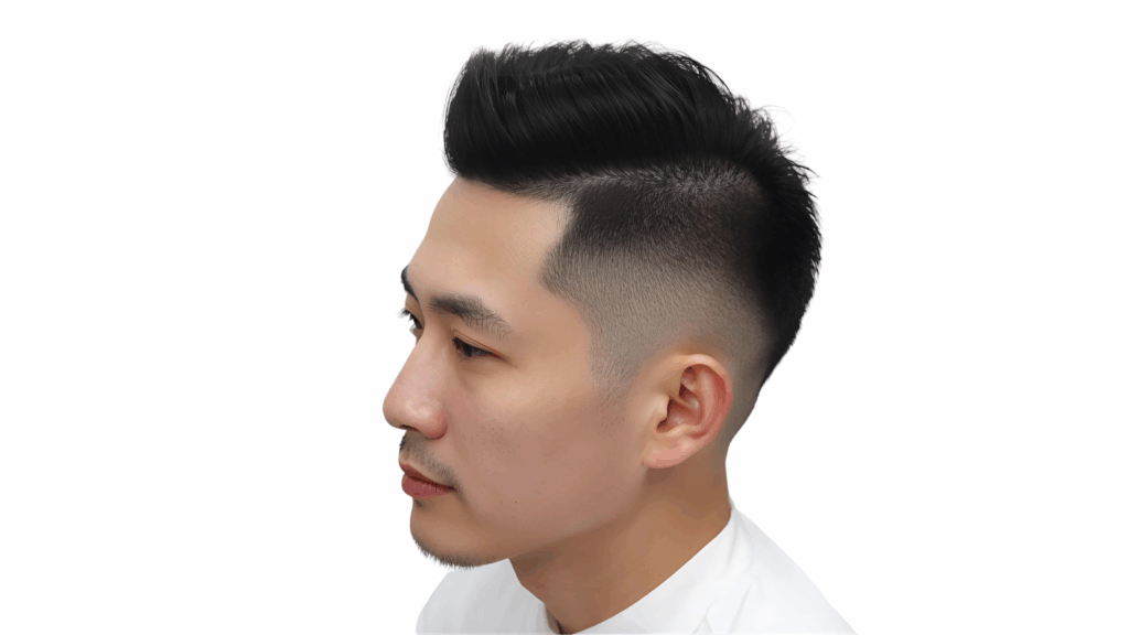スキンフェードは、側頭部や後頭部を0mmから刈り上げて、頭頂部に向かって徐々に長くしていくスタイルです。