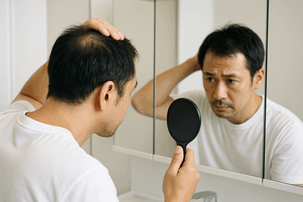 合わせ鏡で自分のつむじ周辺を確認してください。