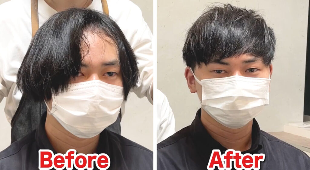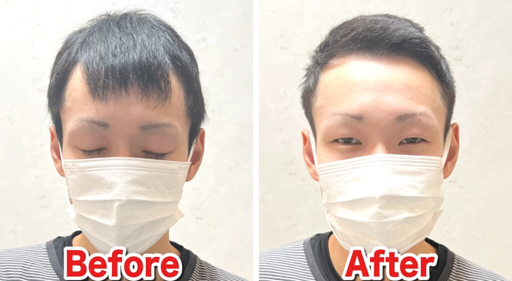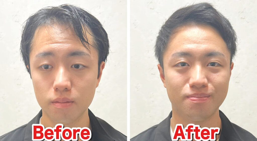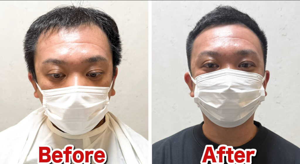 全体的に髪の毛が短いので、M字部分の薄毛が目立ちにくくなります。