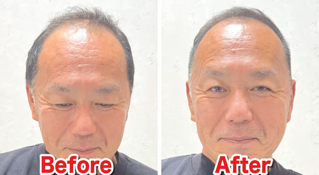 頭頂部にボリュームを出すと、M字部分よりも視線が上に向き、生え際の後退が目立ちにくくなります。