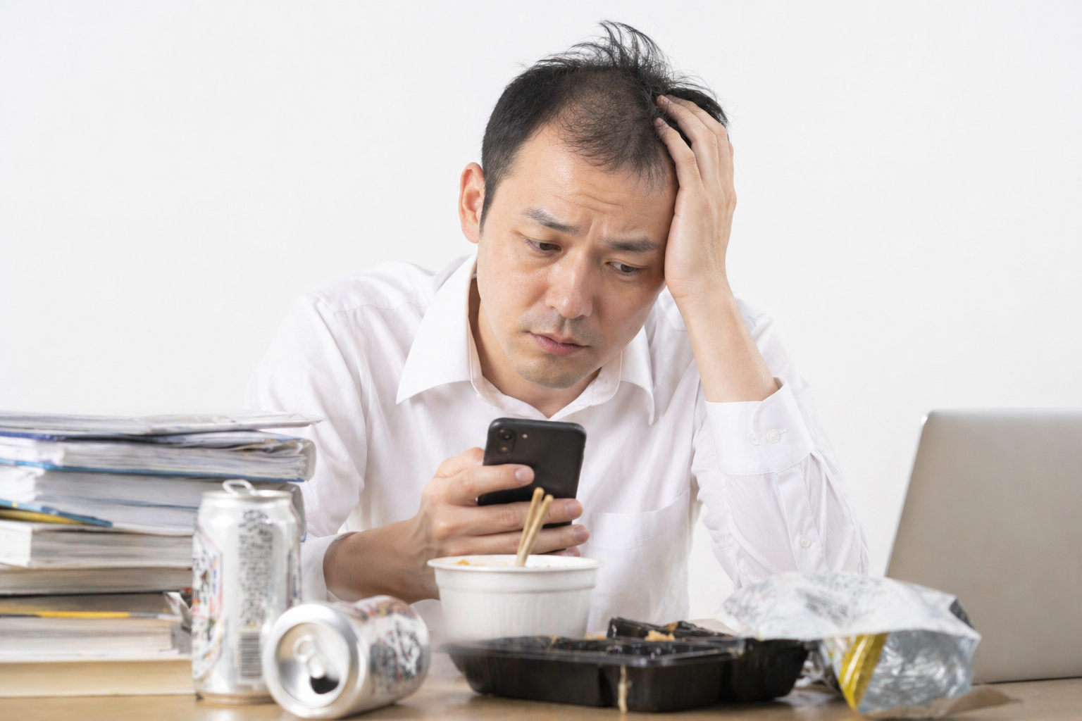 睡眠不足・偏った食生活・運動不足といった生活習慣の乱れは、髪の成長に必要な栄養が頭皮に届きにくくなる原因です。