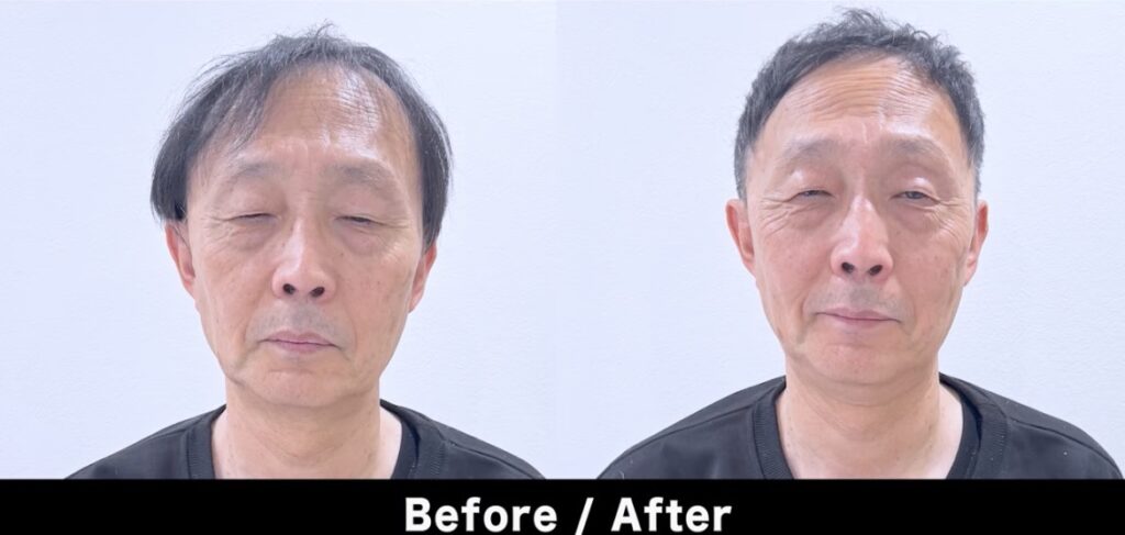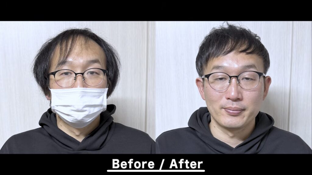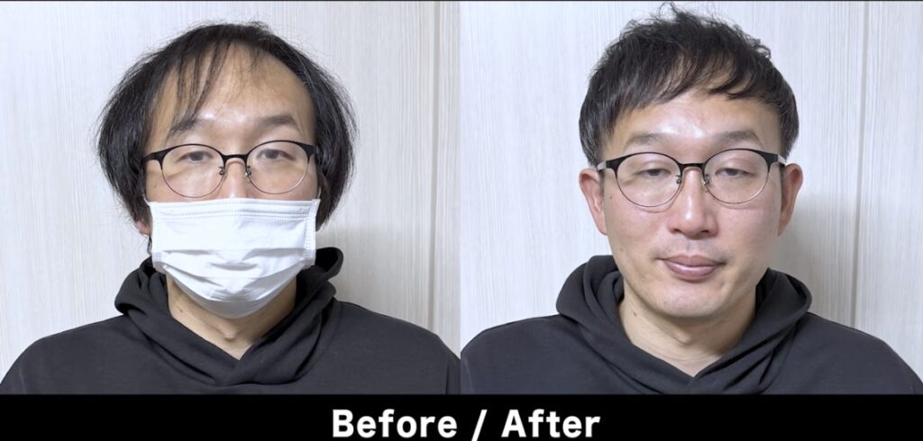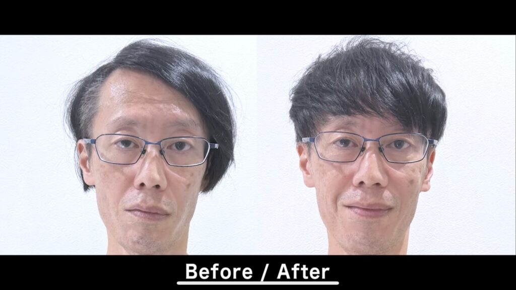 左右非対称にすることで視線が分散されるので、生え際の後退や薄毛が目立ちにくくなります。