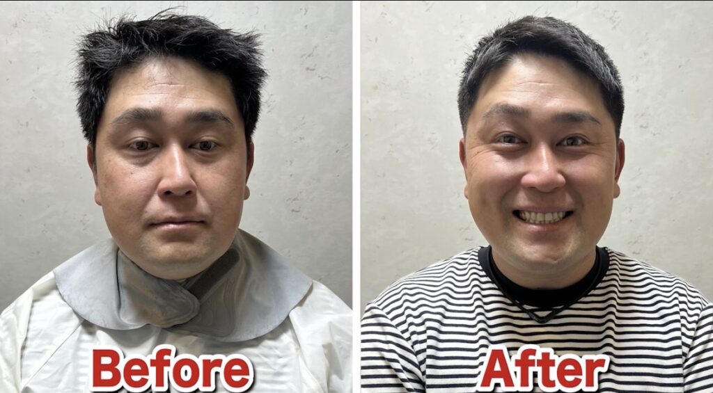 また、側頭部をすっきりと刈り上げることで視線が分散され、生え際の後退が気になりにくくなります。
